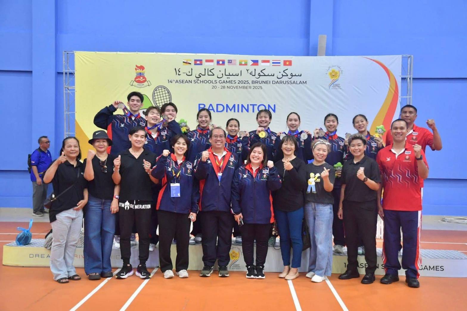 ทัพนักกีฬาแบดมินตันนักเรียนไทย โชว์ฟอร์มสุดยอด ศึกกีฬาโรงเรียนอาเซียน ครั้งที่ 14 ณ กรุงบันดาร์เสรีเบกาวัน ประเทศบรูไนดารุสซาลาม ระหว่างวันที่ 19-29 พฤศจิกายน 2568